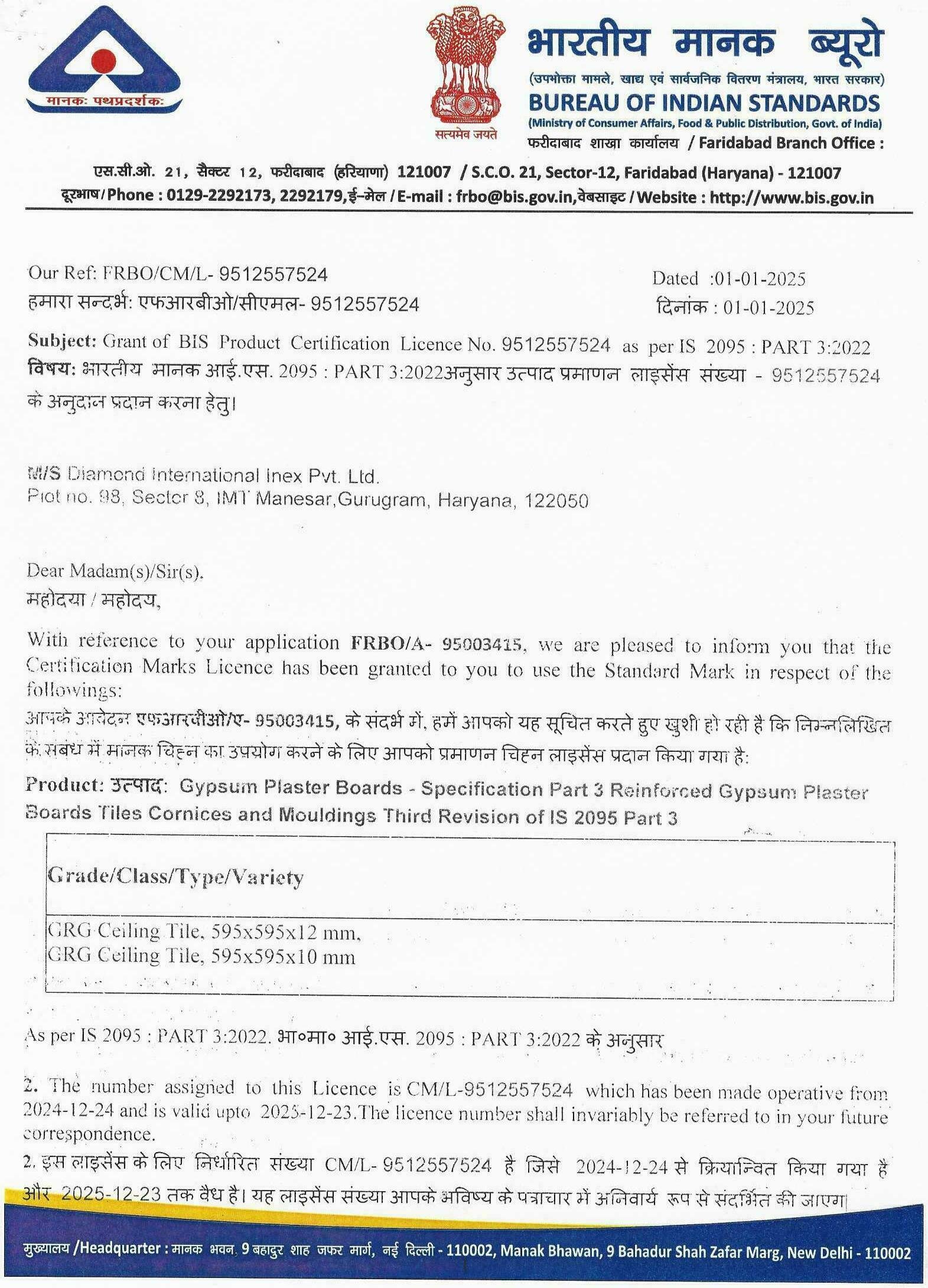 BIS Certification Page 1